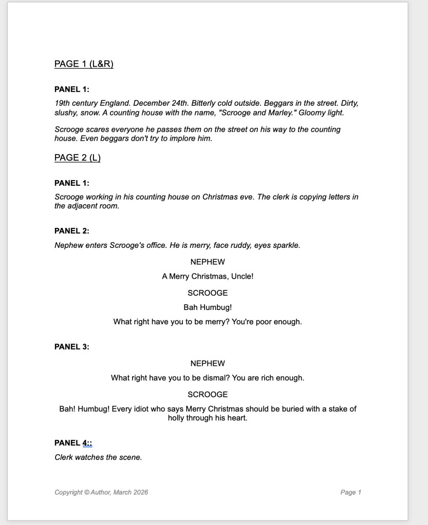 Now go ahead, try writing a script. Write a few scenes of a story and organize it into pages and panels. Let us know how it goes in the comments below or in my Substack community space.